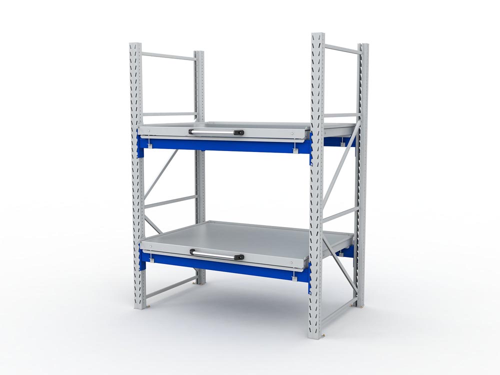 Стеллаж с выкатными платформами S-HEAVY 500 (2 яруса хранения) RAL 7035 Арт. ER-00023392 | - | ВхШхГ, мм: 2000x 1800x 1000x |