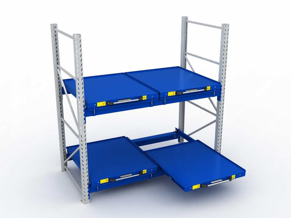 Стеллаж с выкатными платформами S-HEAVY 500 (2 яруса хранения) RAL 7035 Арт. ER-00023392 | - | ВхШхГ, мм: 2000x 1800x 1000x |