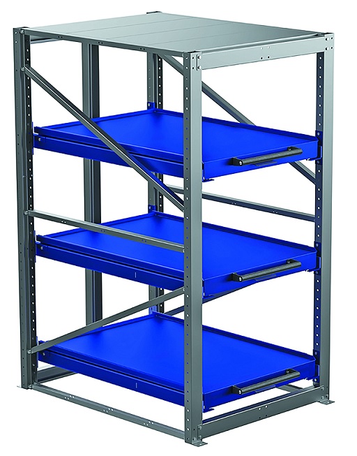 Стеллаж с выкатными платформами S-HEAVY 500 (3 яруса хранения) Арт. ER-00027260 | - | ВхШхГ, мм: 2000x 1800x 1000x |